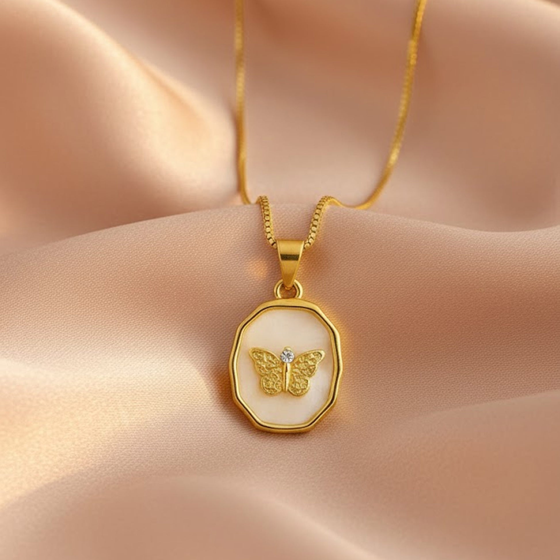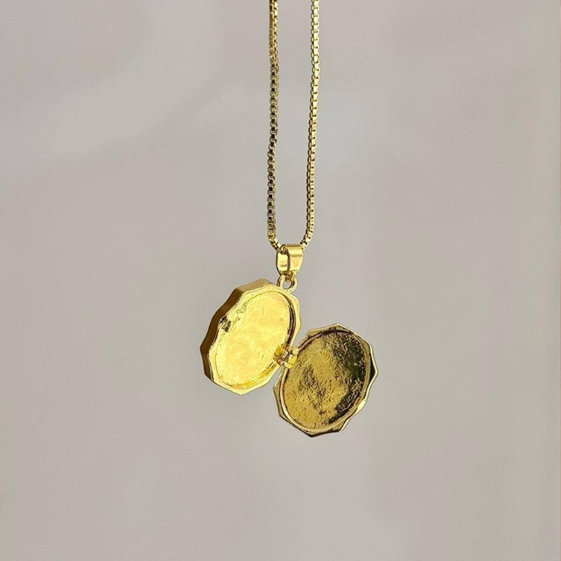 Collar tipo relicario con diseño octagonal y superficie lisa, elaborado en rodio con acabado pulido que resalta su brillo y elegancia.